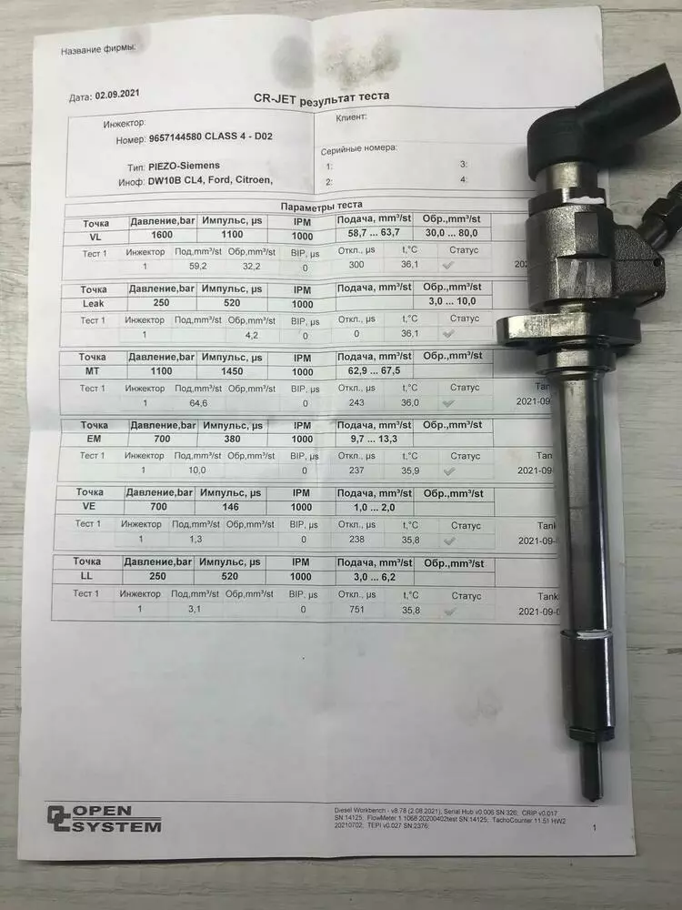 Всі форсунки в хорошому робочому стані. Кожна форсунка перевіряється на сцепіалізованому стенді,де перевіряється по всіх параметрах. На кожну форсунку є документ підтвердження про її справність та готовність до роботи.Також додатково ми надаємо гарантію на всі форсунки на встановлення та перевірку на Вашому авто.