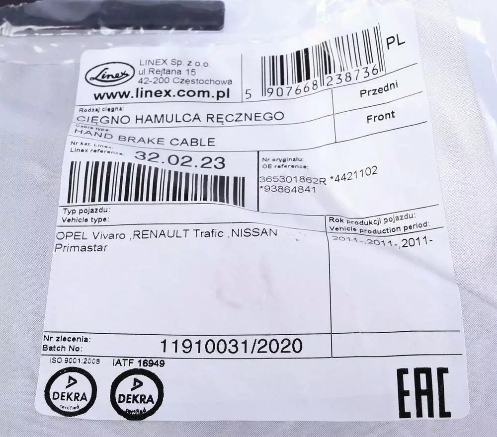 - Тип: Трос ручника